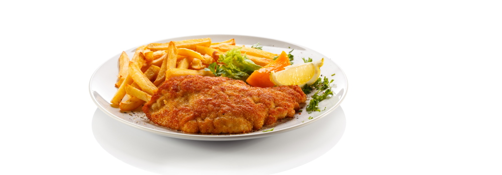 | • | Amerikanisches Schitzel mit Panade aus Cornflakes, dazu Zitrone | .......... | 12,90 | € | a,d | ||